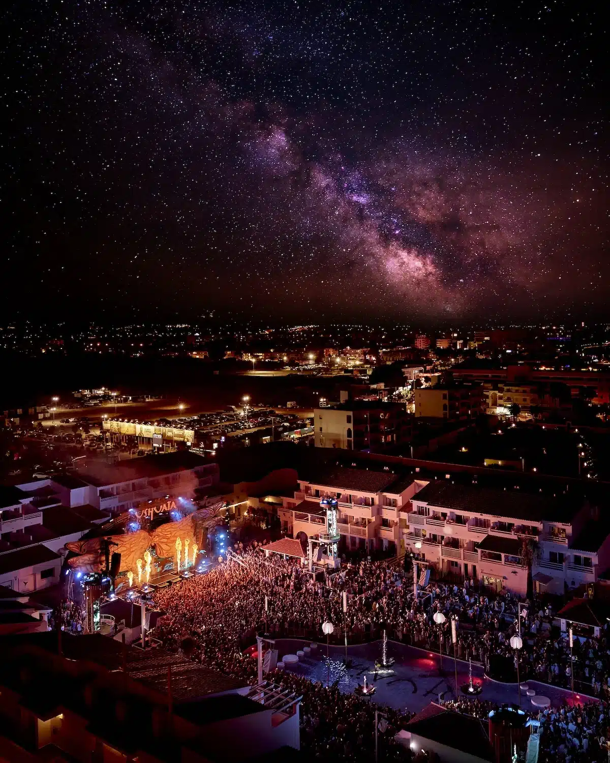 Ushuaïa is located in Playa d’en Bossa, one of the island’s most established nightlife areas, with easy access to Ibiza Town and the airport. This location has made it a strategic base for some of the island’s most prominent events.