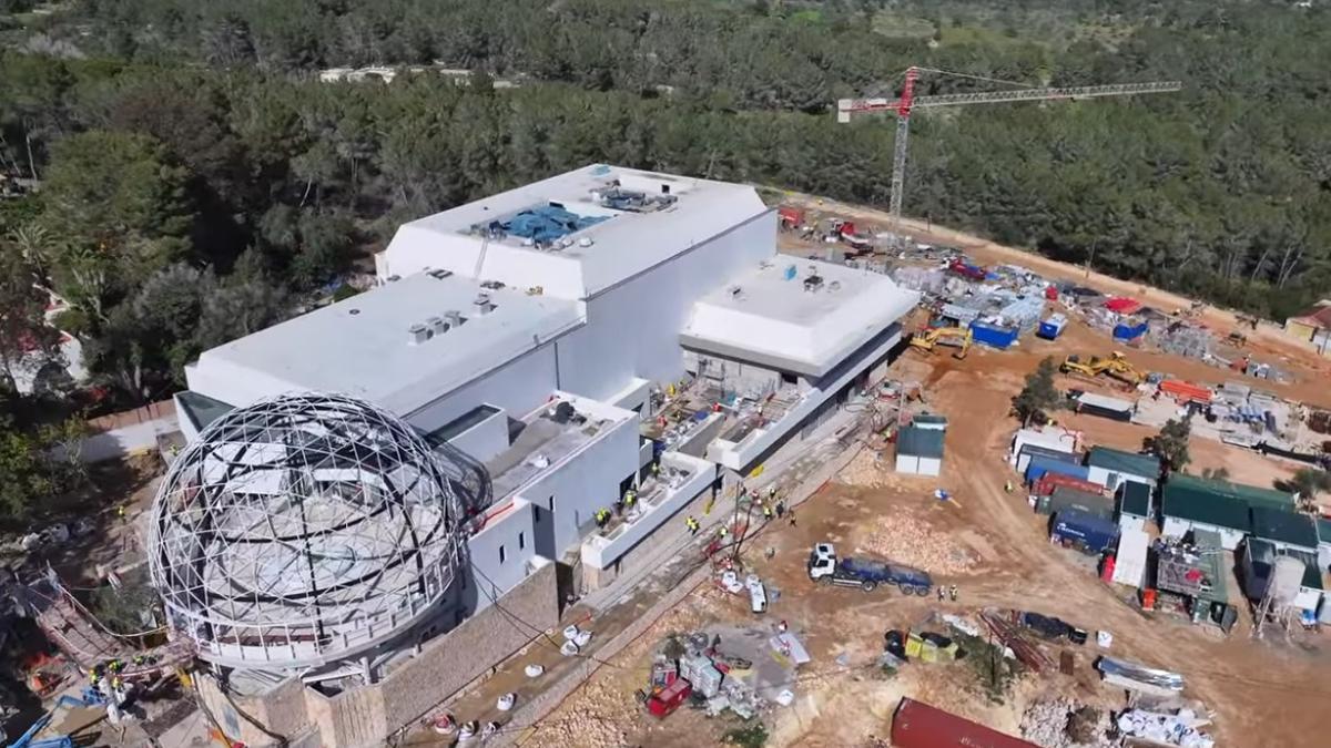The works on the slopes of Sant Rafel continue at a frenetic pace and, from the sky, as seen from a drone, the state of the structures imposes, with its iconic dome inherited from the time of Ku, one of the legends of the island, presiding over everything.