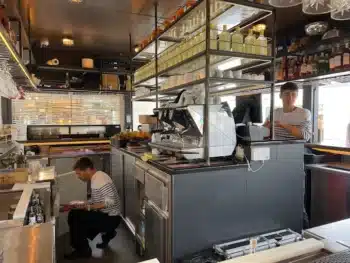 The terrace’s French-style design adds an air of elegance, making it a favorite spot for both tourists and locals. By night, the vibe shifts as the restaurant transforms into a hotspot with live music from local DJs and artists, creating a lively and unforgettable atmosphere.